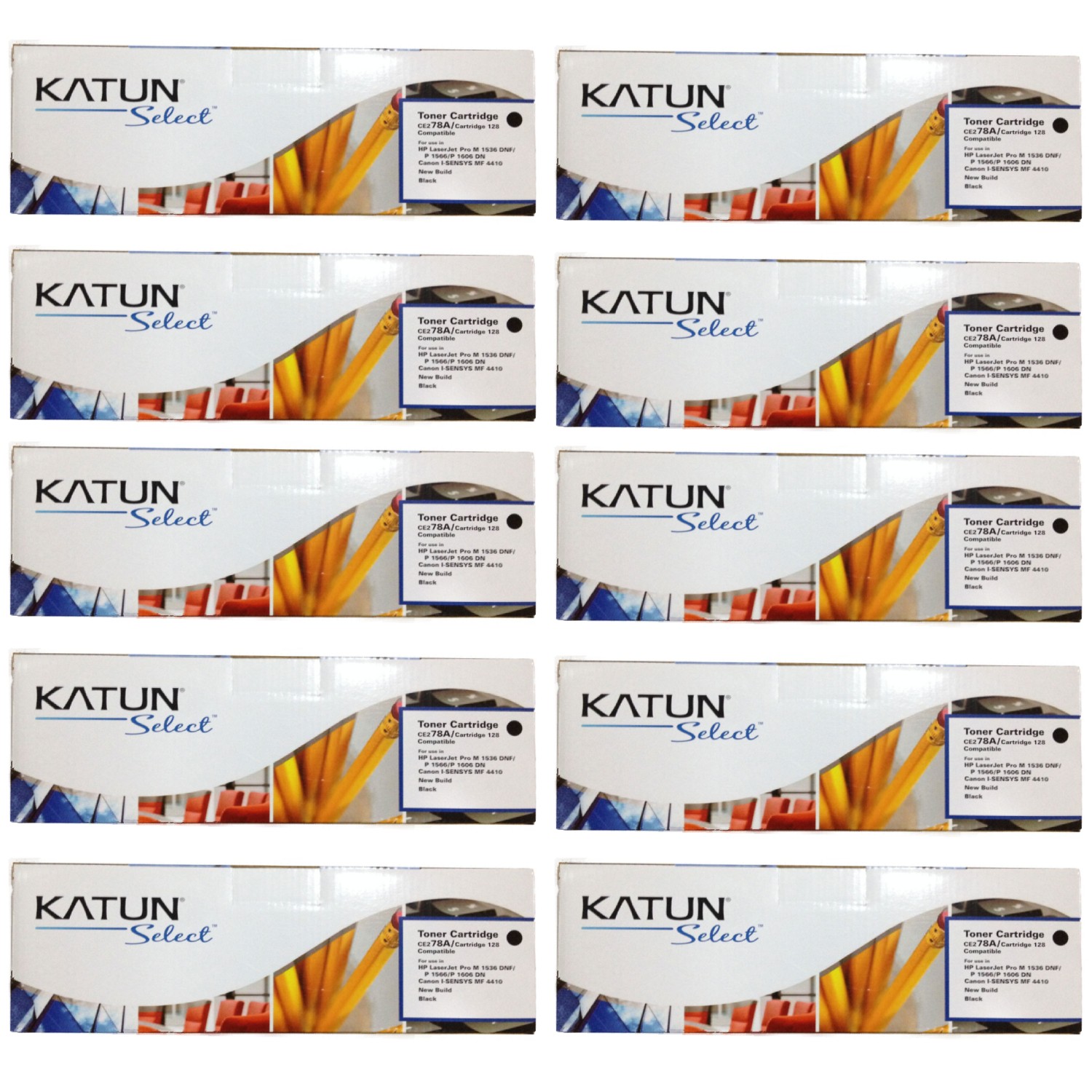 KIT DE 10 CARTUCHOS de Toner Negro CE278A 3483B001AA 3500B001AA Cartucho 126 Cartucho 128 para uso en LJ PRO 1536, 1606, IMAGECLASS LBP 6200, 6230, 520, 530, 550, 560, 4450, 4570, 4570, IMAGECLASS MF 4770 N, 4880, 4890 Katun Select
