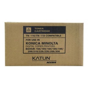 Cartucho Toner Negro 282 g / Cartucho, Equivalente al TN-118, Envasado para usar en Konica Minolta 282 g / Cartucho, Envasado para usar en Konica Minolta para uso en BIZHUB 195, BIZHUB 215, BIZHUB 184 A3VW030 TN118 TN116 Access by Katun