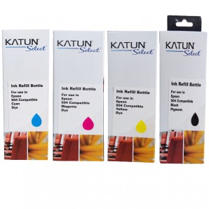 KIT 4 BOTELLAS DE TINTA COMPATIBLE KATUN NEGRO CYAN MAGENTA AMARILLO T504120 T504220 T504320 T504420 EPSON ECOTANK L4150 L4160 L6161 L