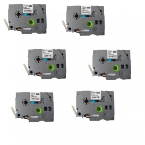 KIT DE 6 CINTA DE ETIQUETAS COMPATIBLES 12MM NEGRO SOBRE BLANCO LAMINADAS Tze-231 Tze231 TZ Tze 231 Tz-231 Tz231 P-Touch
