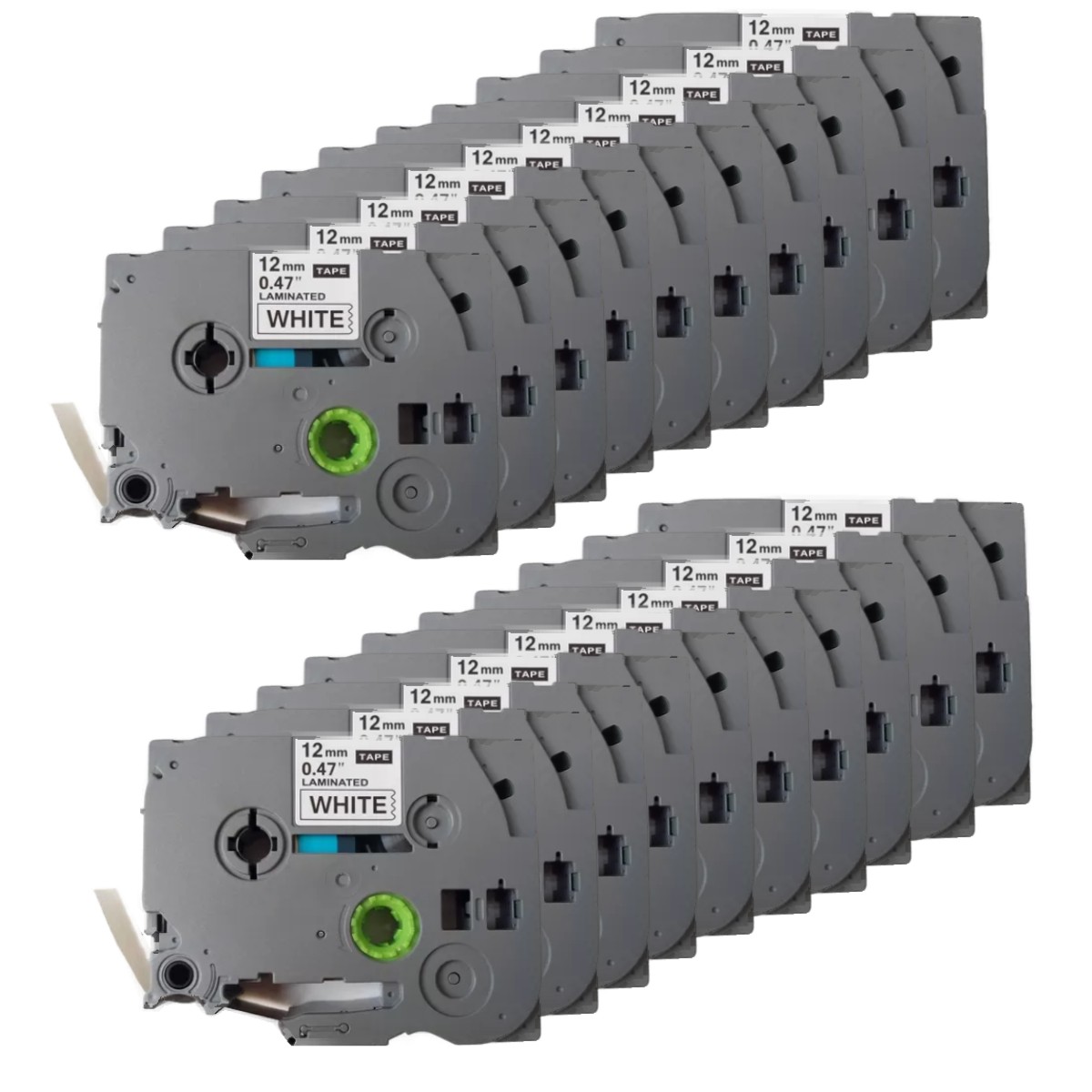 KIT DE 20 CINTAS DE ETIQUETAS COMPATIBLES 12MM NEGRO SOBRE BLANCO LAMINADAS Tze-231 Tze231 TZ Tze 231 Tz-231 Tz231 P-Touch
