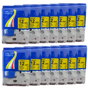 KIT DE 14 CINTAS DE ETIQUETAS COMPATIBLES 12MM NEGRO SOBRE AMARILLO LAMINADAS Tze-631 Tze631 TZ Tze 631 Tz-631 Tz631 P-Touch