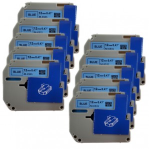 KIT10 CINTAS DE ETIQUETAS COMPATIBLES 12MM NEGRO SOBRE AZUL LAMINADAS M-K531 MK 531 MK531 P-Touch PARA BROTHER PT-55 PT-85