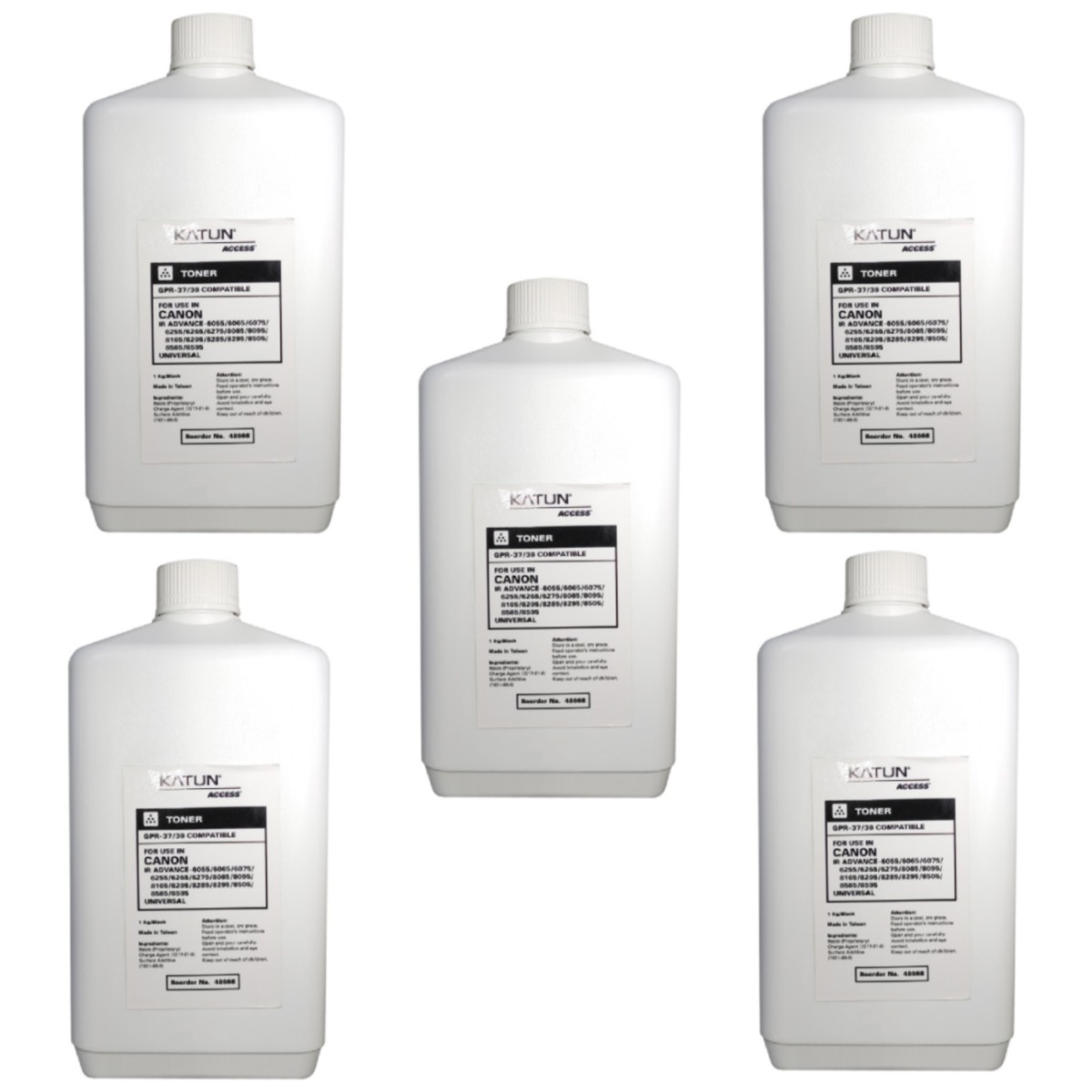 KIT DE 5 Toner Negro 1000 g / Botella, Equivalente al GPR-37 GPR-38, Envasado para usar en Canon, para uso en 8085, 8095, 8105, 8205, 8285, 8295, 8505, 8585, 8595, 6055, 6065, 6075, 6255, 6265, 6275, 6555, 6565, 6575, IR ADVANCE DX 6755, 6765, 6780 3764B003AA 3766B003AA Access by Katun