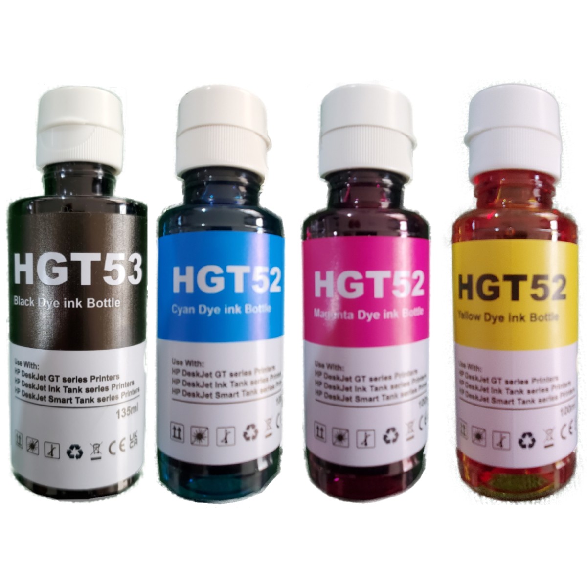 KIT DE 4 BOTELLAS DE TINTA COMPATIBLE NEGRA (135ML) CIAN MAGENTA AMARILLA (100ML) COMPATIBLE HP GT52 DESKJET GT 5810 5820 5822 INK TANK 115 310 311 315 319 410 411 412 415 416 418 419 SMART TANK 519