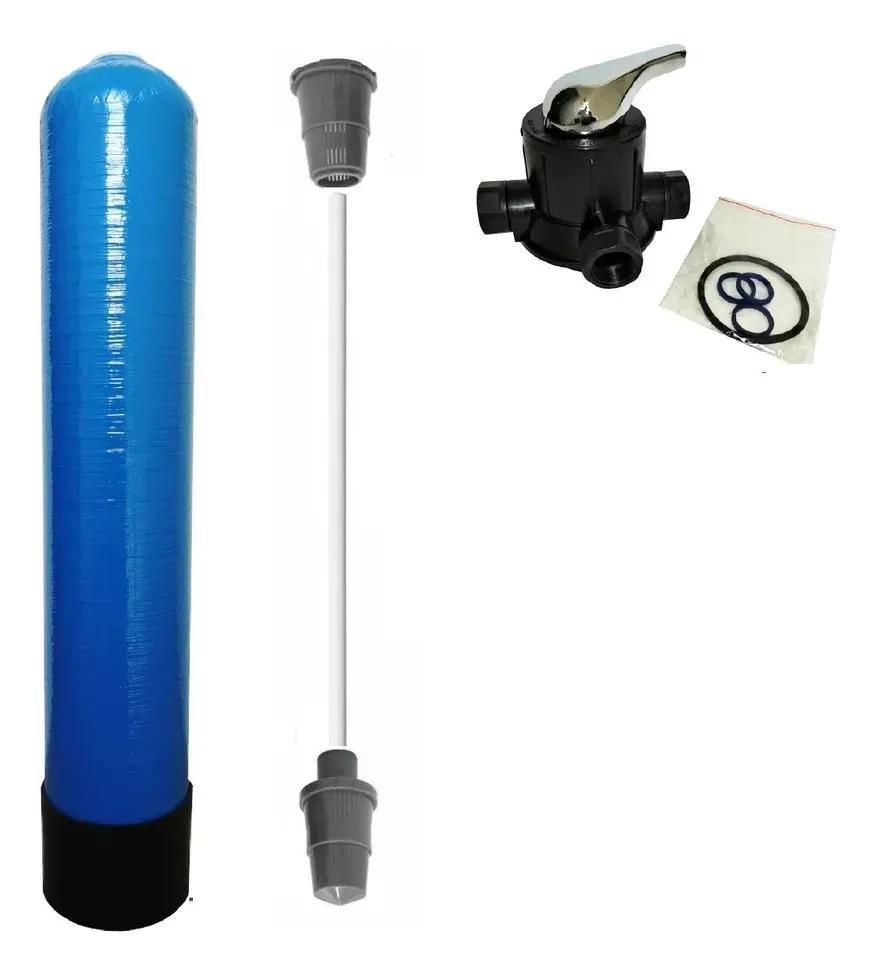 Tanque 9x48 Fibra de Vidrio AZUL + VALVULA FILTRO MANUAL (con sus toberas)+ PVC 3/4