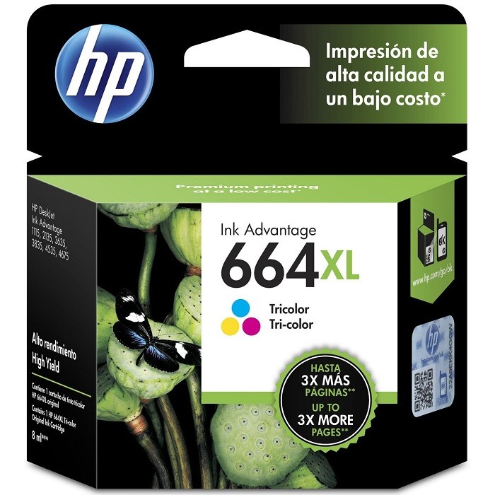 Cartucho original de tinta tricolor de alto rendimiento HP 664XL Advantage F6V30AL