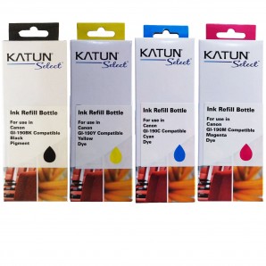 KIT 4 BOTELLAS DE TINTA COMPATIBLE KATUN NEGRO CYAN MAGENTA AMARILLO GI-190BK GI-190C GI-190M GI-190Y CANON PIXMA G1100 G1110 G2100 G2101 G2110 G2111 G3100 G3101 G3102 G3110 G3111 G4100 G4102 G4110 G4111