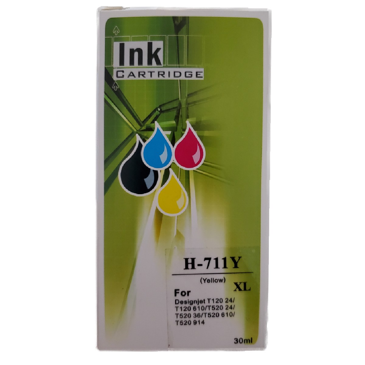CARTUCHO DE TINTA AMARILLO COMPATIBLE CON HP 711 Designjet T520 T120 300 ML CZ132A 27.5ml