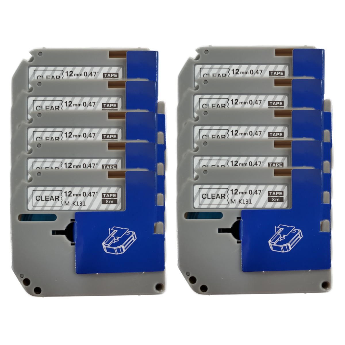 KIT 10 CINTAS DE ETIQUETAS COMPATIBLES 12MM NEGRO SOBRE TRANSPARENTE LAMINADAS M-K131 MK 131 MK131 P-Touch PARA BROTHER PT-55 PT-85
