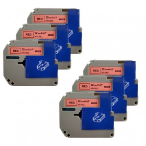 KIT 6 CINTAS DE ETIQUETAS COMPATIBLES 12MM NEGRO SOBRE ROJO LAMINADAS M-K431 MK 431 MK431 P-Touch PARA BROTHER PT-55 PT-85