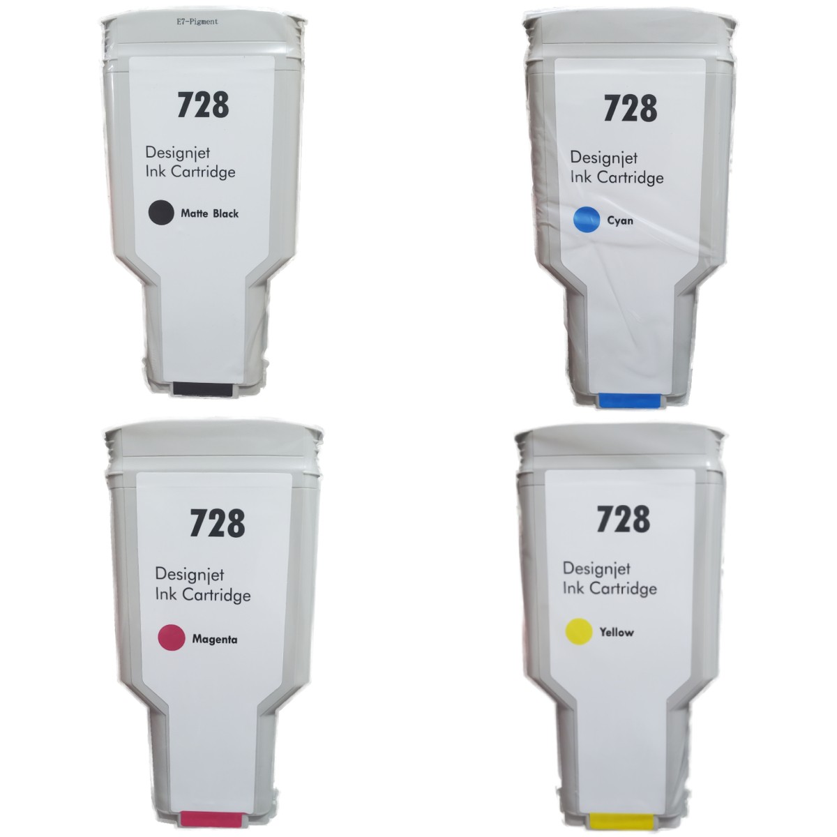 KIT 4 CARTUCHOS DE TINTA NEGRO MATE CIAN MAGENTA AMARILLO COMPATIBLE CON HP 728 DesignJet T730 T830